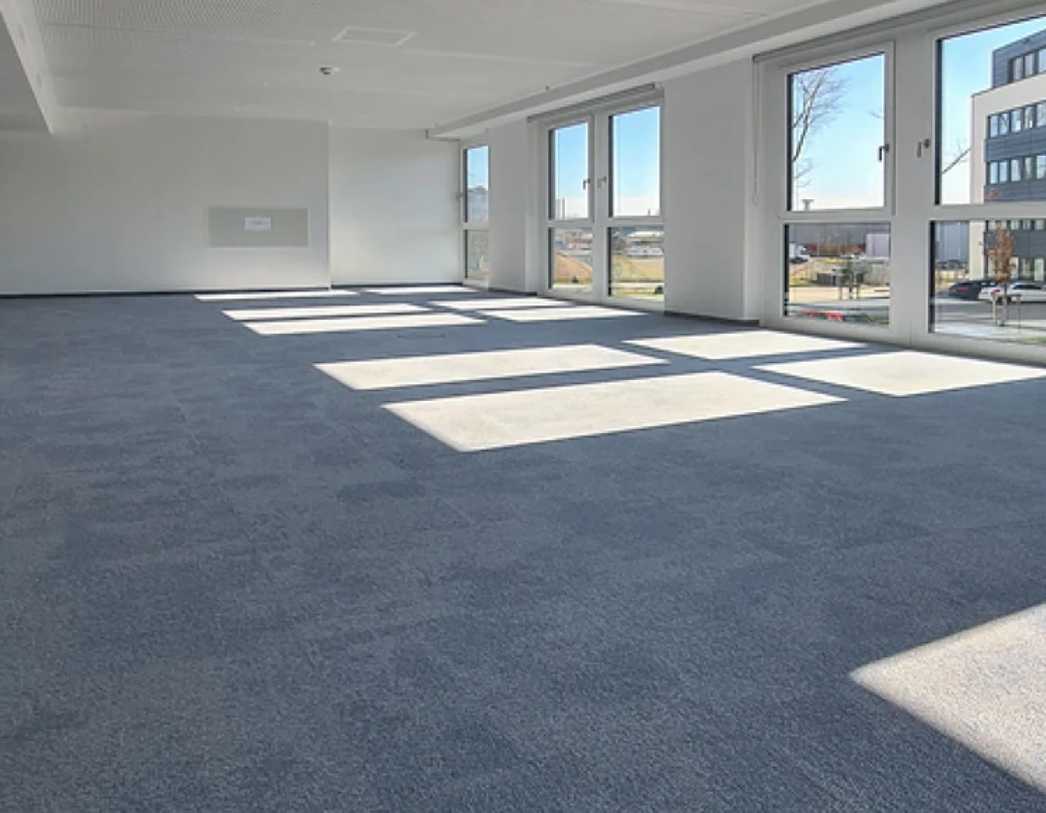 passend zur Architektur kommen kreative Kombinationen aus Teppichfliesen, Vinyl und Linoleum zum Einsatz.